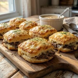 These French dip–inspired biscuits offer a convenient, hand-held twist on a classic comfort food. By combining flaky refrigerated biscuits with savory roast beef, melted cheese, and a…