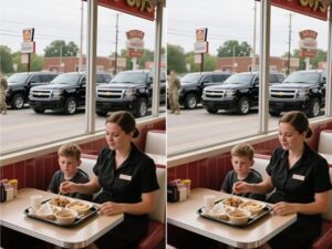 😵😲I fed a lonely boy every morning in secret to keep the management from knowing. One day, however, he failed to show up: the note the soldiers gave me clattered the floor beneath my boots, and black automobiles pulled up in front of the café in place of the child.