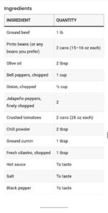 This recipe creates a rich, flavorful base for a classic pot of chili — warm, filling, and easy to customize. Adjust the ingredients and spice level to suit your taste!